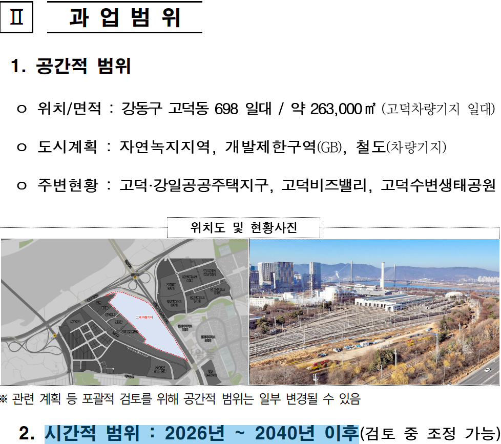고덕차량기지 복합개발 사업화 방안 수립을 위한 서울시 외부 용역 공고가 나왔다. 여러 요구 사항이 있지만, 사람들이 가장 궁금한 것 이게 언제쯤 끝날 것인지만 살펴본다.