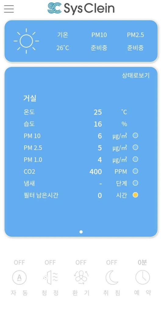 시스클라인도 공기청정 기능만 보면 일반 공기청정기랑 다를 바 없다. 환기청정기(전열교환기)가 있기 때문에 일반 공기청정기로는 할 수 없는 일을 할 수 있다. 그 중 하나가 실내 공기 상태에 따라 환기청정기를 작동하는 기능이다. 환기청정기는 창문을 닫아도 실내 오염 물질을 밖으로 내보낸다. 바깥 공기는 필터로 먼지를 걸러서 안으로 넣어준다.